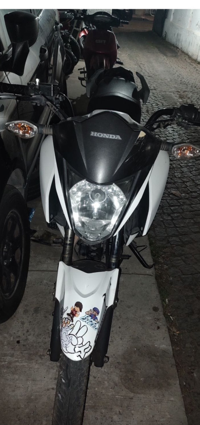 Personal de la Policía Local, mientras patrullaba la zona de Necochea e Italia, encontró una motocicleta Honda modelo CB 125 CC F Twister de color blanco, sin patente colocada. La moto se encontraba aparentemente abandonada en la vía pública.