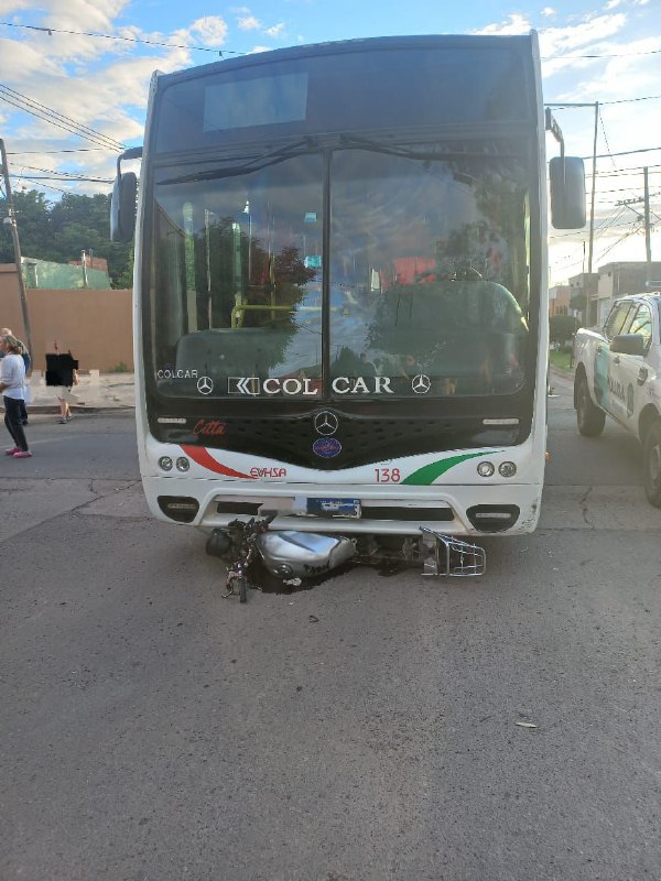 Dos personas resultaron con lesiones leves este sábado tras un siniestro vial ocurrido en la esquina de Acevedo y Congreso, donde una motocicleta Honda Storn 125 c.c. fue colisionada por un colectivo de la empresa Vercelli Hnos.